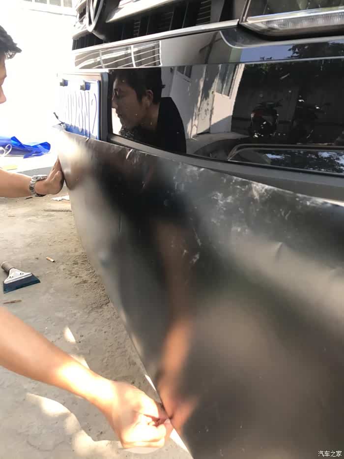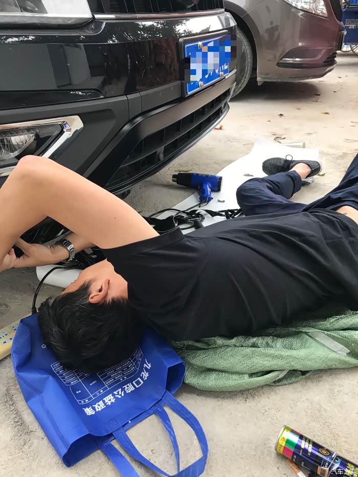 最开始弄的是最简单的前后大众标志和尾灯熏黑膜,网上都有卖现成的,前大灯为了保持光亮度,我还是选择了透明保护膜。
