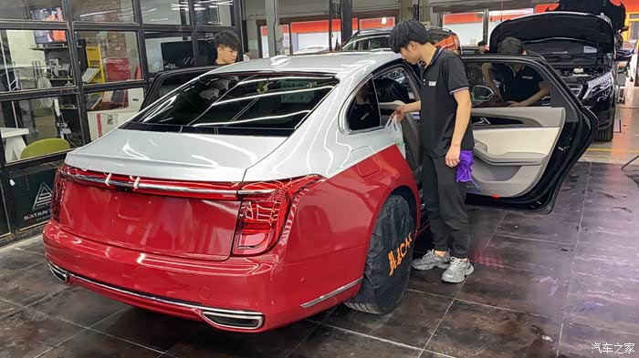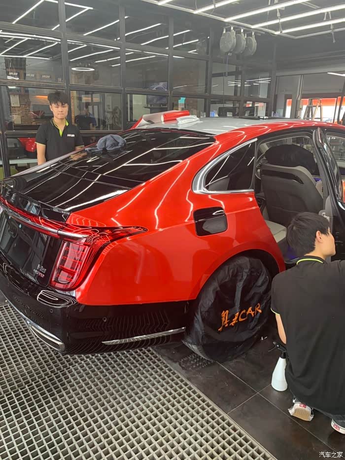 因为贴车衣和改色膜需要把标都先扣掉,贴完后在粘上!有个小伙计和我说,哥,你把这个红旗扣掉吧,别人都不知道你这是啥车了。 我说不行,我买这个车就是奔着红旗这俩字来的!这俩字必须放上,并且要显眼!让人一眼就看出我们这是红旗,这是我们中国人自己的品牌!!不光红旗要贴上,下面的H9标识也一定要贴上!