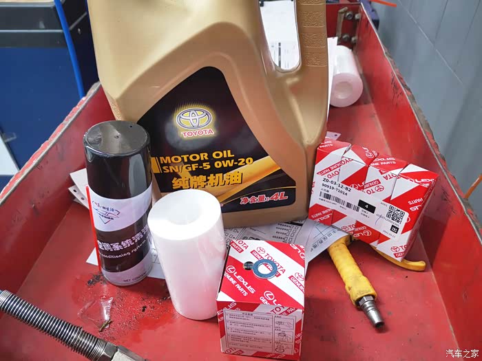 师傅把需要用到的零件机油都放在这边了,机油也用的020好点的