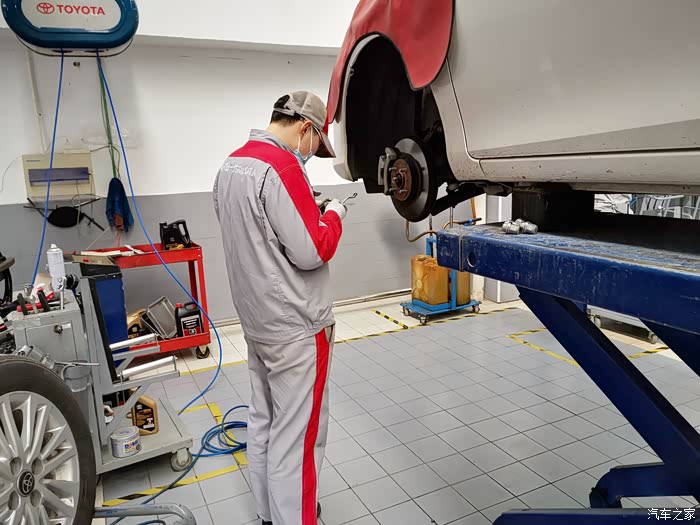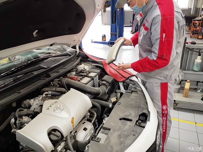 保养手册真的给了我很大的帮助,是新手小白的情况下参考保养手册正常养护就没什么问题。保养手册上写的是,每隔6个月或者一万公里保养,以时间或者里程先到者为准。所以说小威的保养周期还是比较长的,小威驰的第一个一万公里就这么快到来了,我是按照一万公里间隔保养一次,保养用的是丰田纯牌全合成机油,首保免费,流程的话跟以后保养也都大差不差,更换机油机滤,全车检测空气滤芯和空调滤芯检查、灯光检查等等,像火花塞、防冻液、节气门这些不常规的项目不需要次次换,有需要再更换。