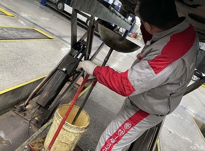 师傅再调架子,脏的机油已经放出来了,这次里程数开的相对比较多,过年出门了一趟