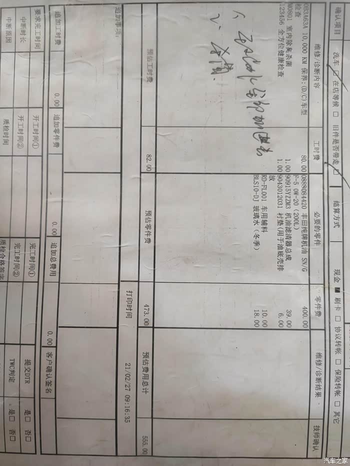 丰田保养还是非常省心的,半年或者一万公里两个周期都可以参考,上半年跑的少按照半年的时间刚刚好,这次保养里程上跑了不到一万三公里。都是按照流程操作,登记里程确认车周身情况,接着下单告诉我该更换的项目,之后车就给师傅开走了