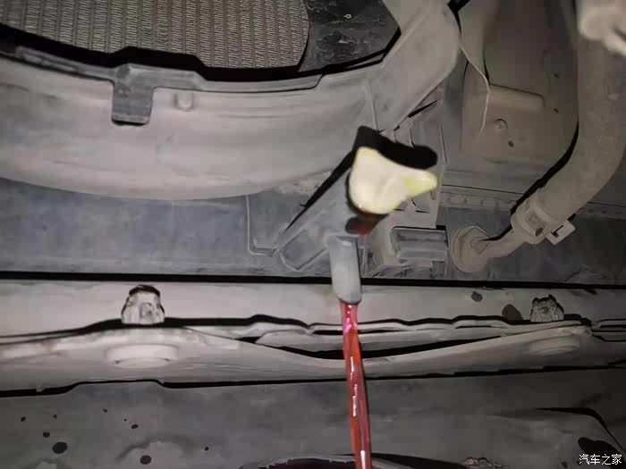 老的防冻液放出来是粉红色,新防冻液像血液一样深红。