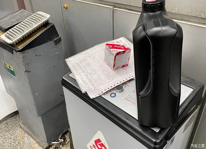 这是我车的机油和机油格,因为我这车就是上下班,开的公里数比较少,所以5000公里的机油足够用了