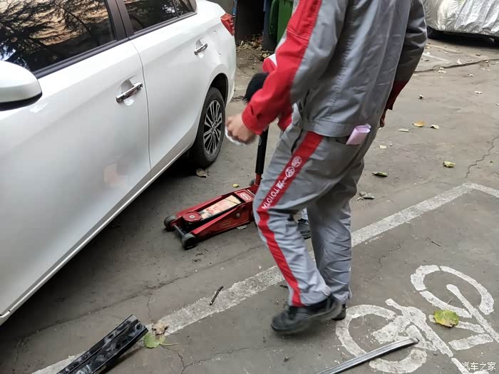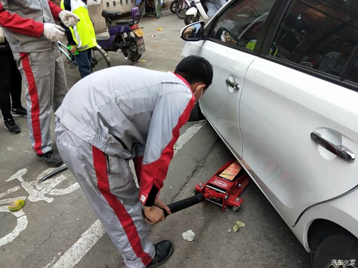 总共来了两个丰田的师傅,有专业的千斤顶。