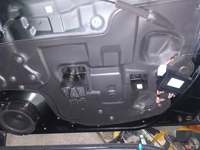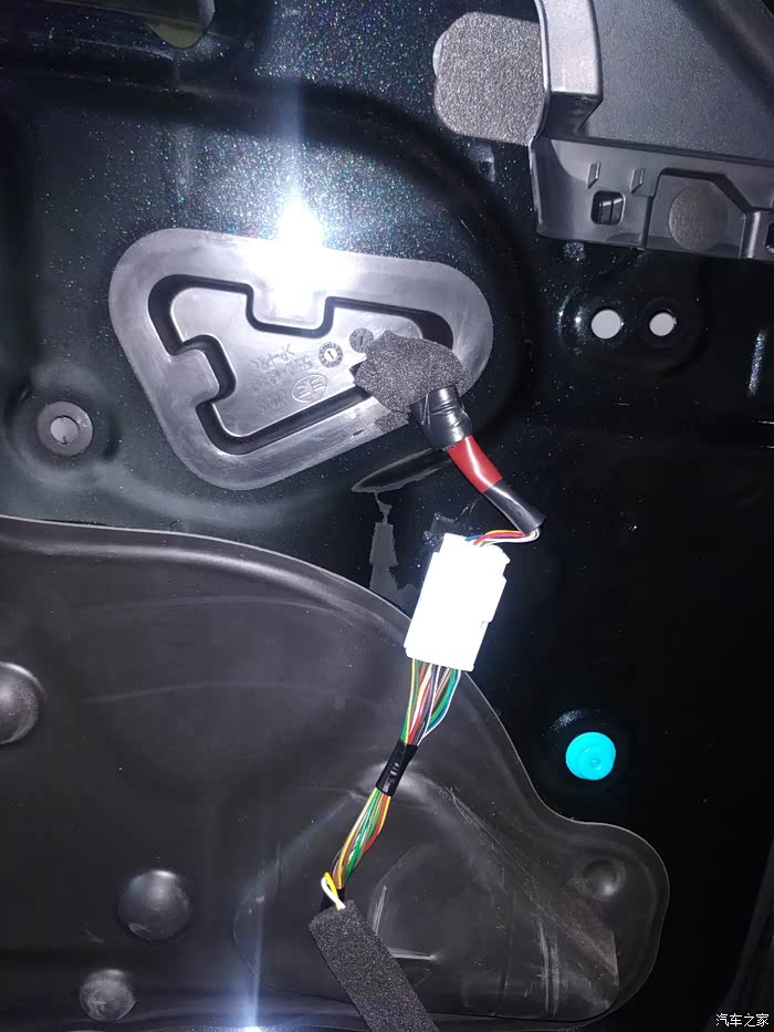 再取出门板线束,安装时要插到位,听到咔哒一声才到位。