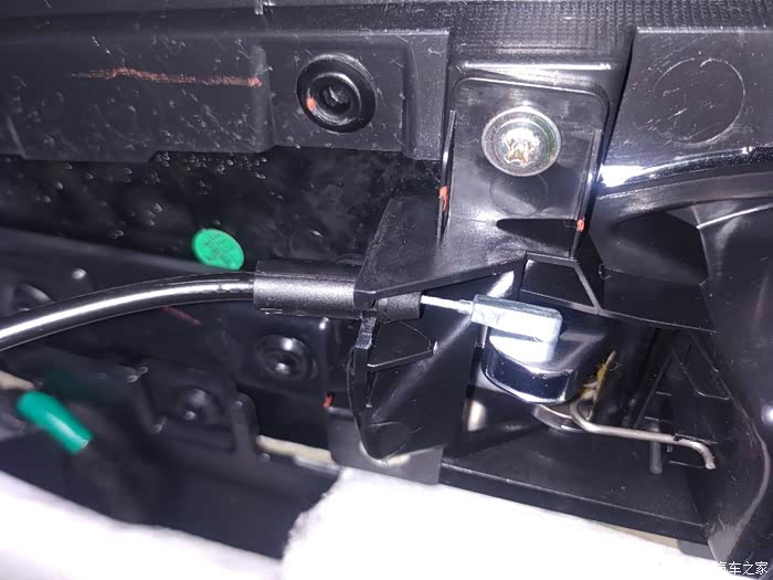 这个拉手线拆下要技巧,把黑色部位往外掰,然后再取出银色钩子,安装时一定注意黑色部位要压到位,不然会打不开门。