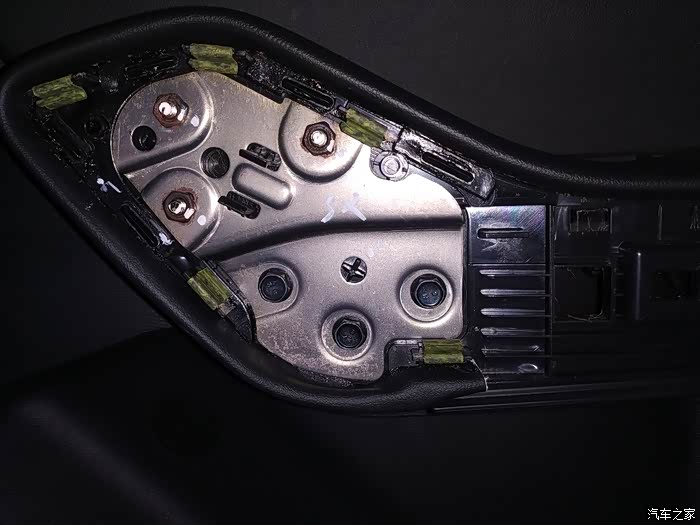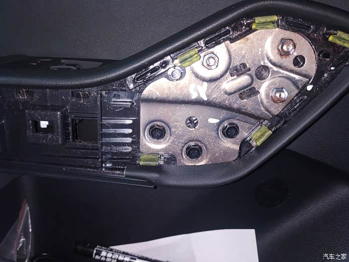扶手盖打开后里面有三棵黑色10号六角螺丝,需要T10套筒