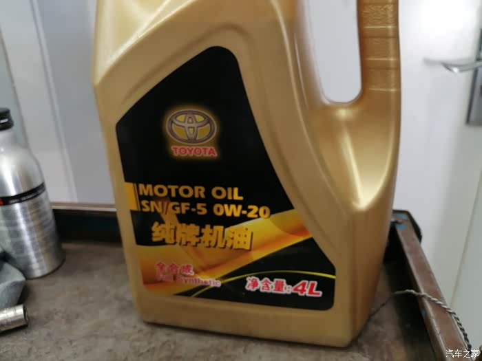 机油看着很面熟,这个应该是丰田的统一使用的吧,看着质量还不错,这一桶油应该都能用上,赶紧把它换上吧,这个机油也挺重要的,好像基础保养都需要整这些东西。