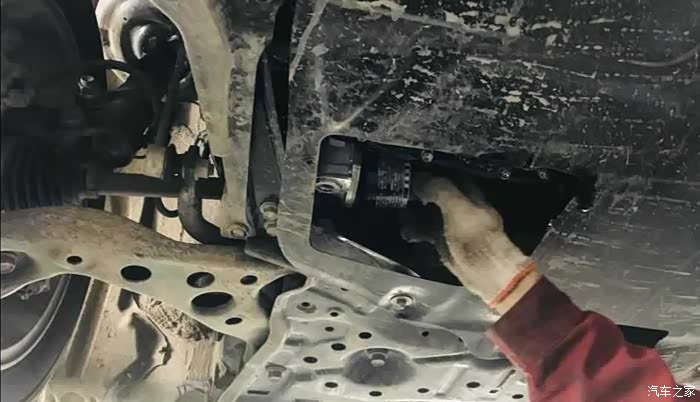 工人师傅把机油换完了以后,然后用螺丝拧住了底盘,看着这个底盘状态还可以。