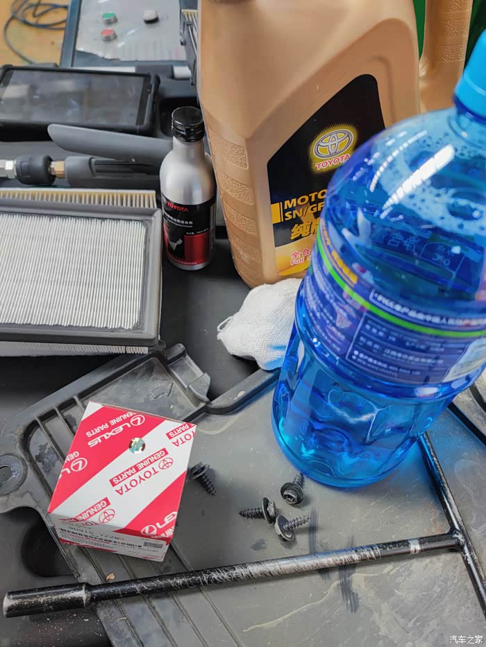 机油滤也带有原厂标识 ,丰田很多车型都同时适用的~