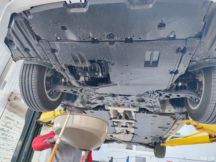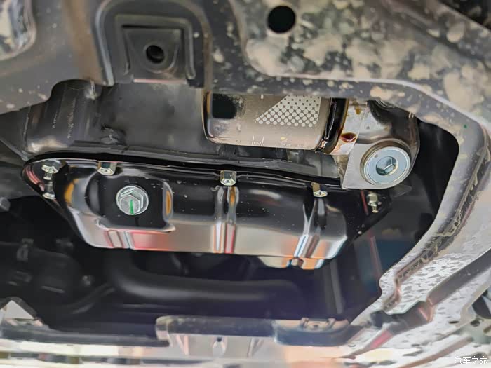 卡卡的底盘很是平整,师傅拆掉了机油滤的那一块好放油