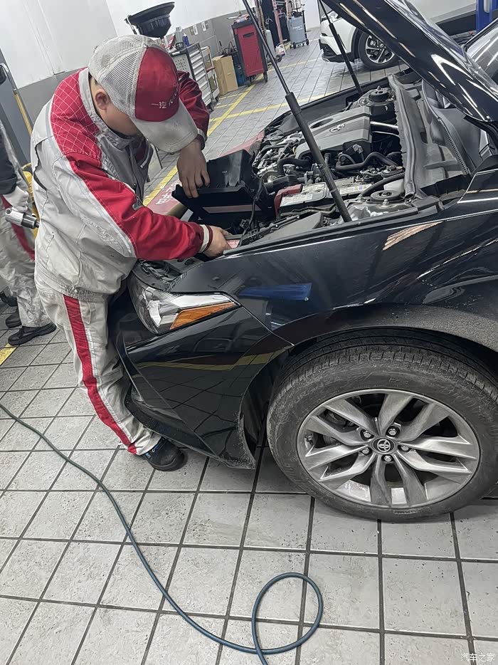 空滤是上次已经换过了,这次拿出来还是蛮干净的就让师傅吹一吹无需更换,省下一笔开支,空调滤芯是从提车到现在没有换过,拿出来的时候直接是灰色的,上面很多的灰尘,之前在丰田活动中兑换过这个滤芯,这次正好师傅检查的时候一起换上,完美的不得了。