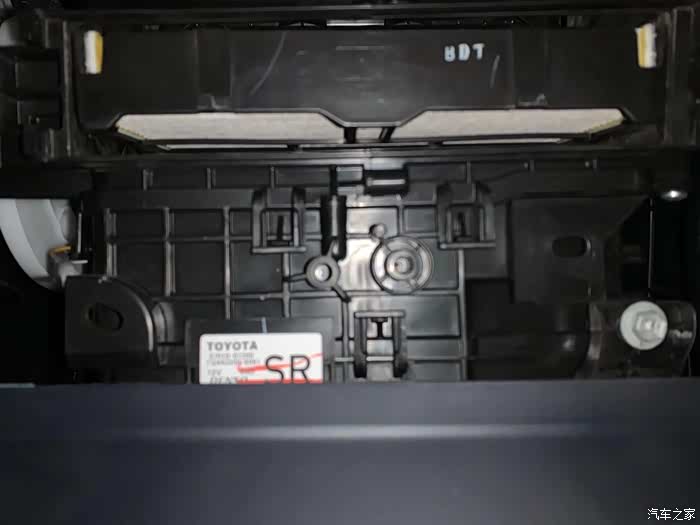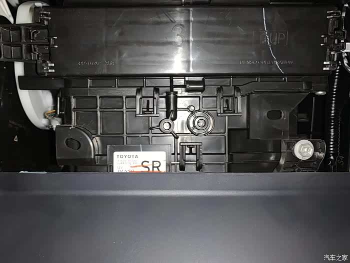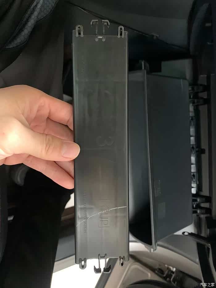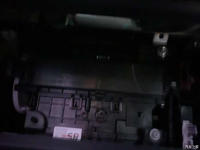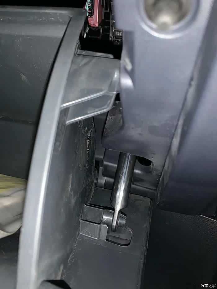 把途中右侧这个连接扣松开,用力轻轻一掰就出来了 然后在箱体两边用力往里侧挤压,手套箱就会拆卸(并非完全拆卸 )下来。具体操作时,小伙伴低头一看就会看到窍门。