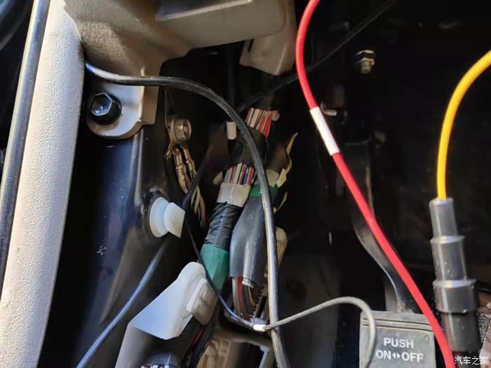 红线连刹车灯保险丝上,黄线连点烟器保险丝上