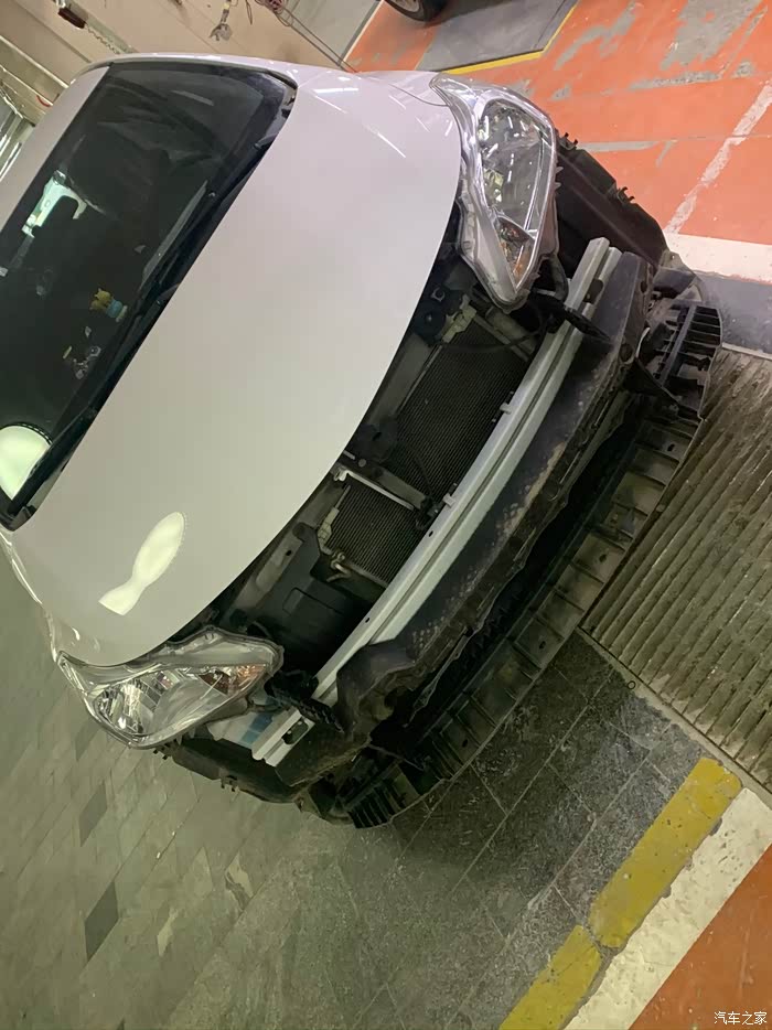 前脸完全裸奔了,对了进店里维修是拖车帮忙拉来的,没有车镜子,没敢开,而且零件掉落的挺严重的,开着有些担心,主要的是我根本没敢尝试