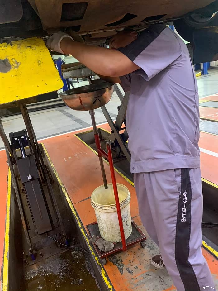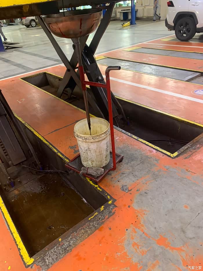油桶摆在下方,机油慢慢流出来,有点黑黑的,所有的配套工具,都说换机油时间非常简单的事,但是我一直坚持着4S店里面保养,因为更保证和可靠,虽然有点小贵