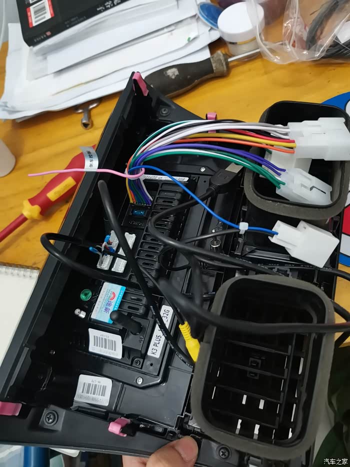 之前的导航突然间黑屏了,开不开机了,后来去汽修店检测是导航坏了,没办法,只能换了,到某宝上逛了一圈决定选择途新,网上销量高,品质好,这不,马上拍下,回来后按照客服操作步骤自己动手亲自安装,这不,能用了,满满的成就感,原先的主要是卡扣在上面固定着呢,拿一字螺丝刀轻轻别开,按照步骤依次安装,里面的插头都是对插的,不用破线,原先跑好的倒车影像控制线直