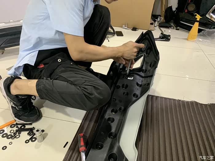 每次看到别人的车 改的那么漂亮 再看一下自己车 就感觉差别好大 之前前后杠是提车被强制加装的 没办法 不装也是那么多钱 至少也给个漂亮一些的呀 越看越丑 朋友都说还不如不装 说多了都是泪呀 还是入手一套好看又实用的吧 对比了很多家 基本都是空心杠 款式又一般 最终选好之后 联系了一下店长 广州有实体店 约好时间直接到店选前后杠颜色 白色车刚开始看了一下带红色的 感觉太张扬了 还是低调一点装个银色吧 选好直接开搞