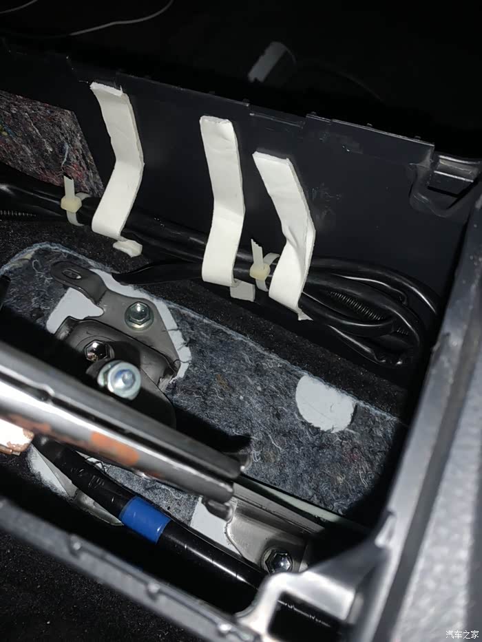 座椅部分都弄好了,开始布线!放在原车水杯架的预留位置!