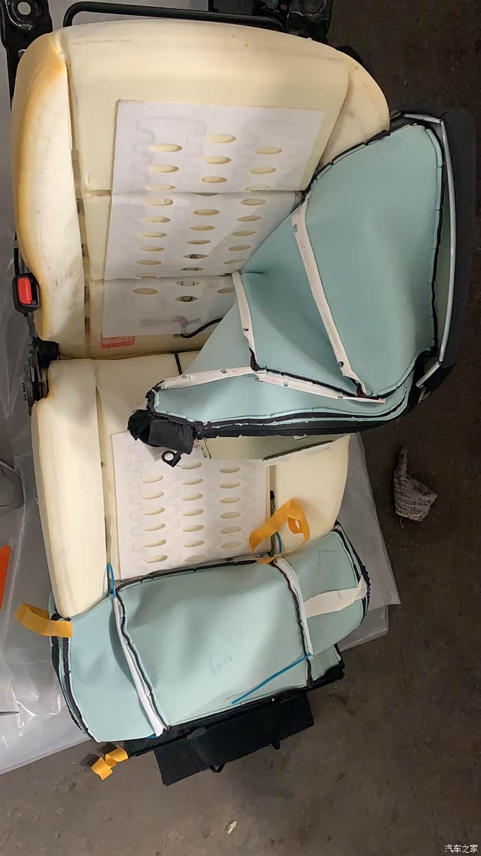 座椅套也比较紧,加热片要贴紧不能有皱褶的地方,还有沟槽的地方玩把加热片按弧度放进海绵槽里,注意固定座椅皮套的孔位是否和加热片孔位是否对其!