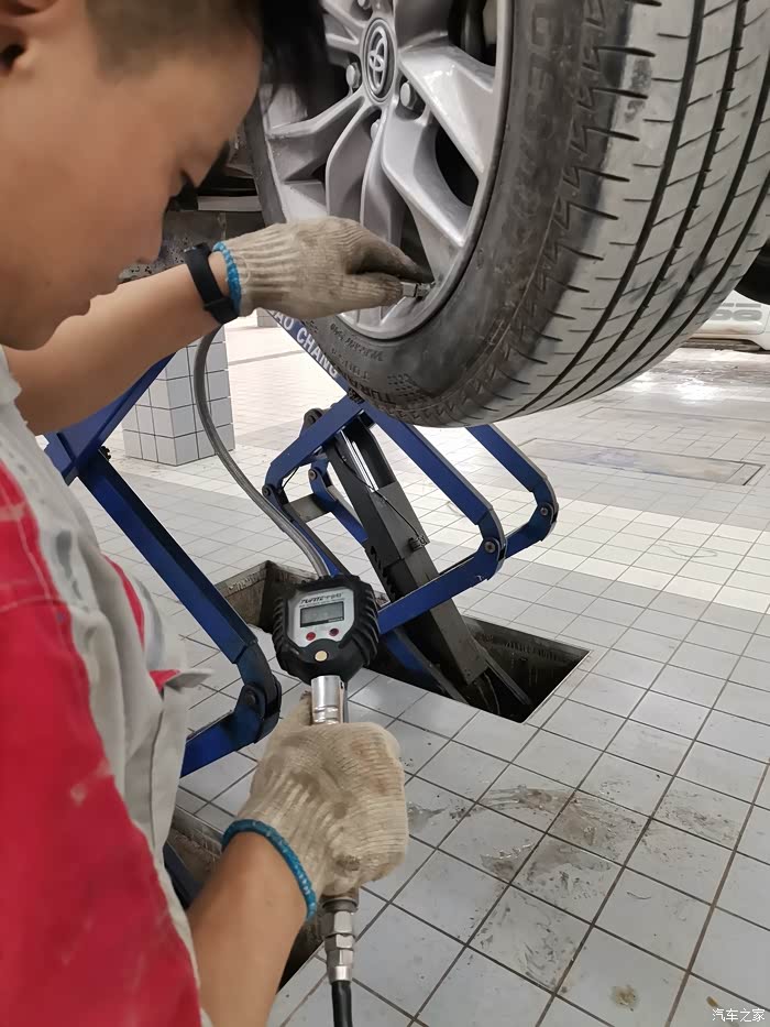工作人员在测胎压。