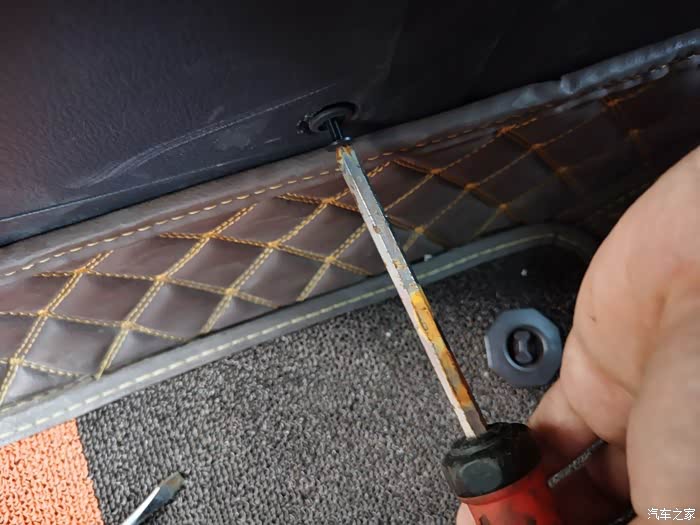 这里有个塑料卡扣用十字螺丝刀拆下来