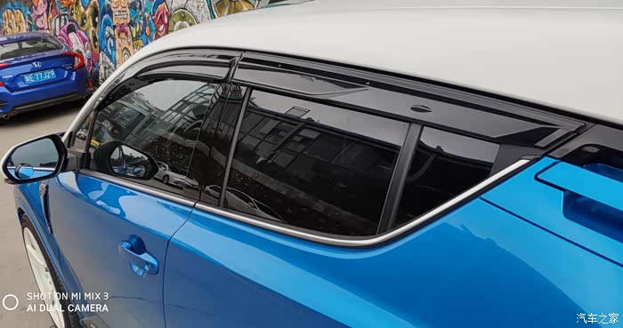 晴雨挡是有抗风阻与静音设计,这几个像水滴造型的不只是装饰,是有实际导风作用,我们车后视镜前端和尾灯也有