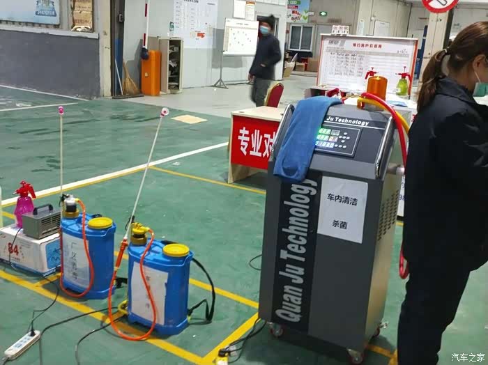 进门的时候也已经量过体温了,车开到车间门口还要再进行消毒才能进车间