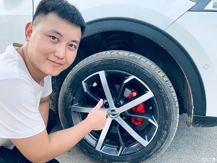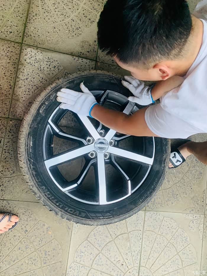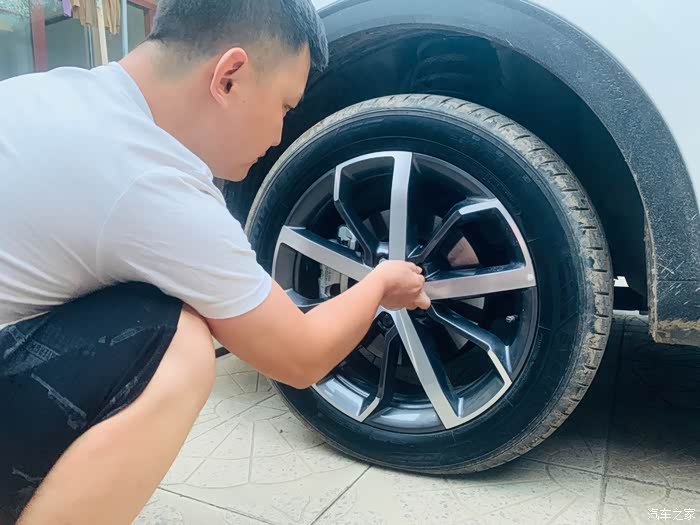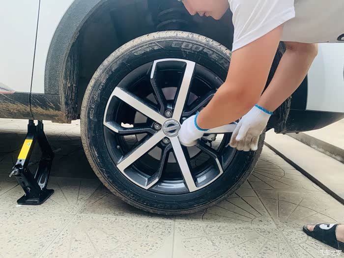这大轮毂拆下来突然觉得很重啊,这就是国产车用料足的地方不得不说,同价位也就只有哈弗汽车给的上十九寸的轮毂了,而且轮胎也不错固铂品牌的主打静音舒适