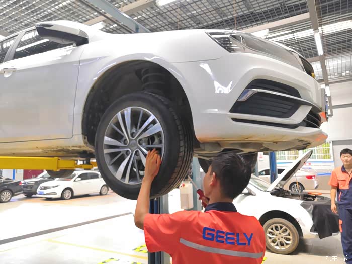 售后小哥哥很贴心的在帮我清理轮胎的小石头