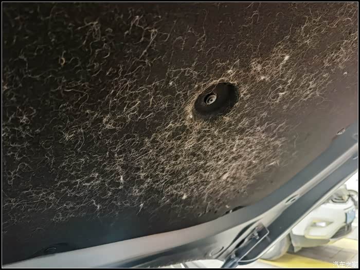 小区流浪猫很多,看来,有个不友好的小动物,从底盘钻进来当成暖窝了。。