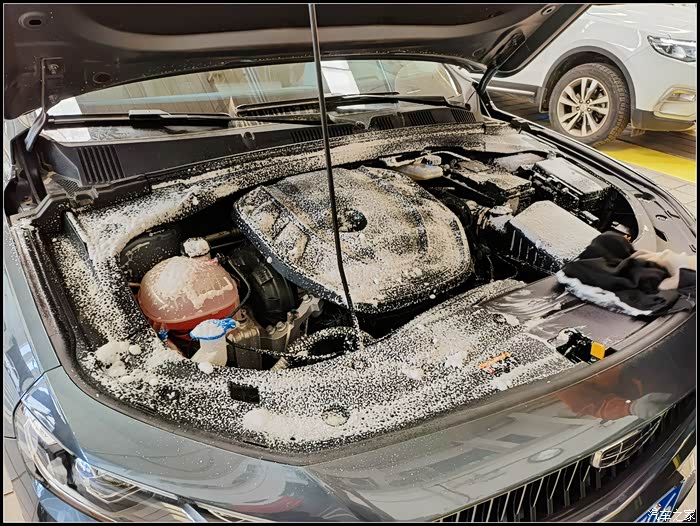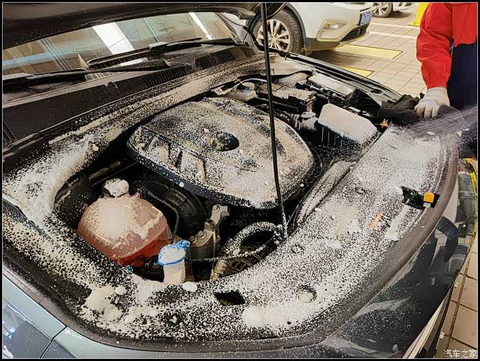 最后还用泡沫清洗剂把发动机舱清理的干干净净。。