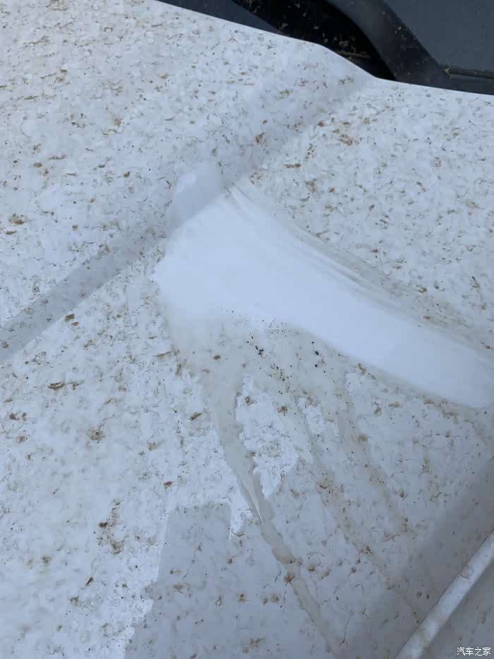 这张是我一开始做后备箱盖测试时喷多流下来的洗车液,可以看到,已经干了,而且是蜡状膜,用手一擦就能亮亮的。