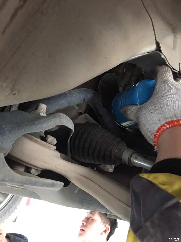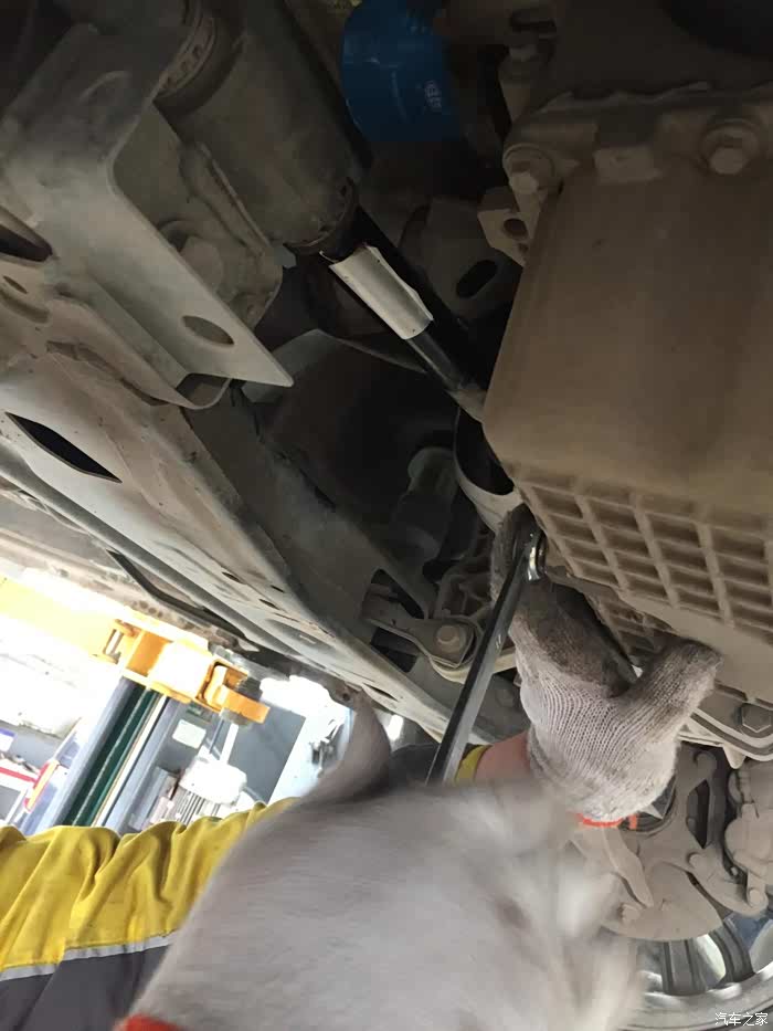 拧放油螺丝,师傅动作很麻利,轻车熟路。