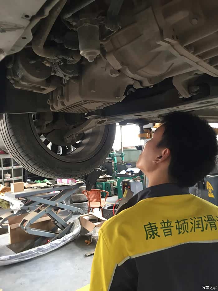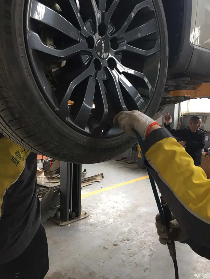 顺便把底盘和轮胎也都检查了一遍,给四个轮子补补气,平衡一下胎压。