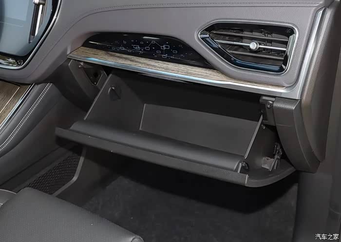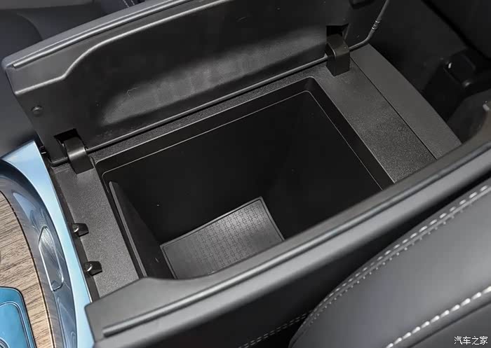 前排中央扶手箱,采用双侧开的,这样开口能做到最大,里面也非常的深,钱多的朋友,不妨取现金放进去试试看,估计20万差不多放得下吧。