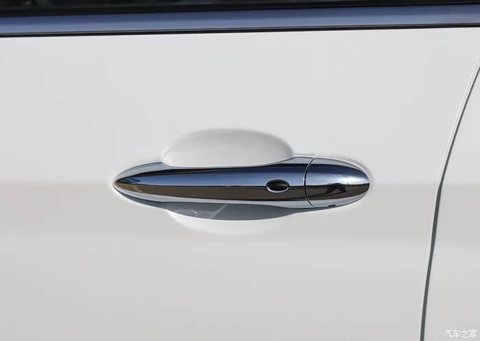 镀络装饰的门把手,确实很亮眼,而且配备的智能钥匙感应,在不需要取出钥匙的情况下就可以解锁和关闭车门。