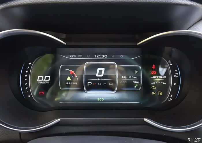 全液晶显示的仪表盘,配合使用方向盘的功能按键,能显示很多行车电脑上的数据,方便车主进行查看。