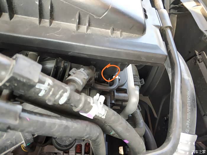 一字螺丝刀撬开车头正中这个卡子,有管路固定在空气滤芯腔体上