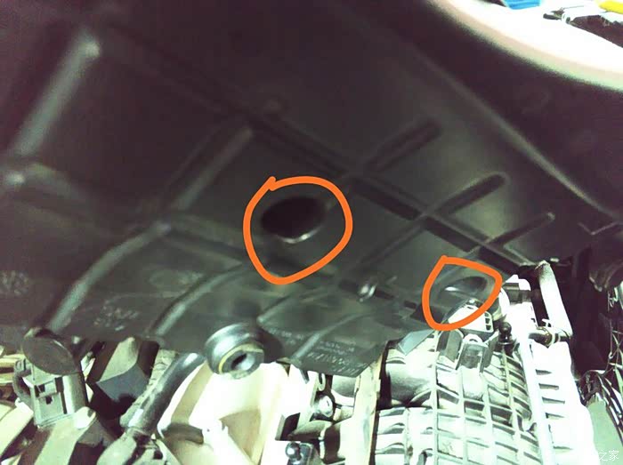 提起上翻空滤总成,圈内为三个圆头固定桩,塞在空滤盒的橡胶柱内,注意这里是提起的受力点。