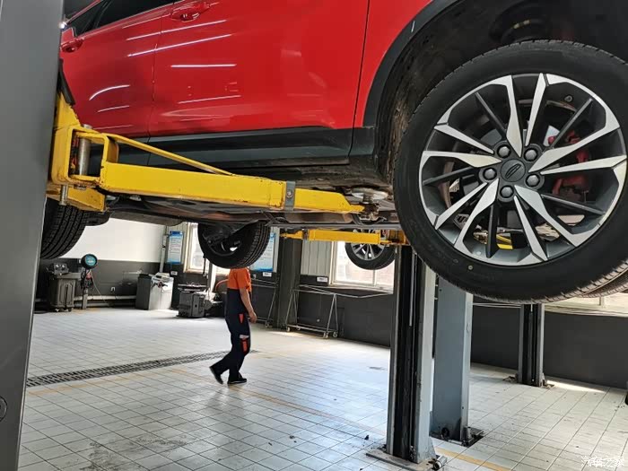 今天正好是周末节假日,带家人出去游玩后,已经不早了,快下午5点的时候来到4S店,把车开进保养专区,显示售后服务人员热情的走过来。并询问是保养还是维修,说明来意后工作人员立马进入准备状态。