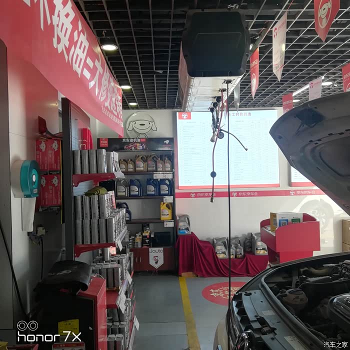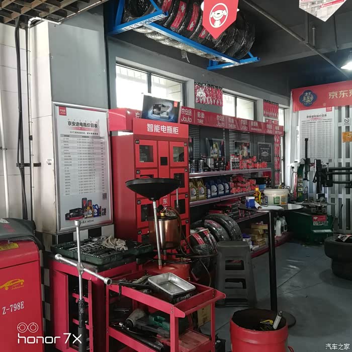 加完一瓶,要等液体慢慢渗下去,再来确定液面,再看还需要加注多少。一步步来,才能保证操作质量。这个间隙,我看看店里的设备,一应俱全。基本涵盖了4s店除了卖车的所有服务。