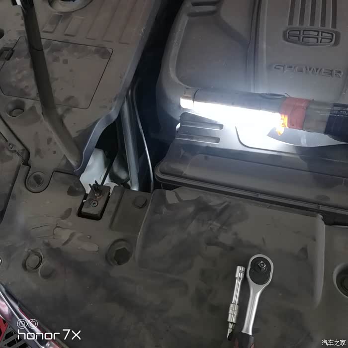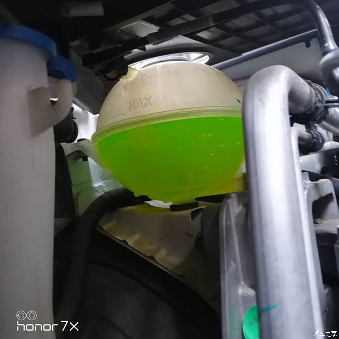 这儿要解释一下,上图是刚加注完成的情况,觉得超出了最高液面很多,师傅说这只是临时的液面,液体还会随时间慢慢下,用车两三天后就会稳定了,那是再看看液面是否正常。