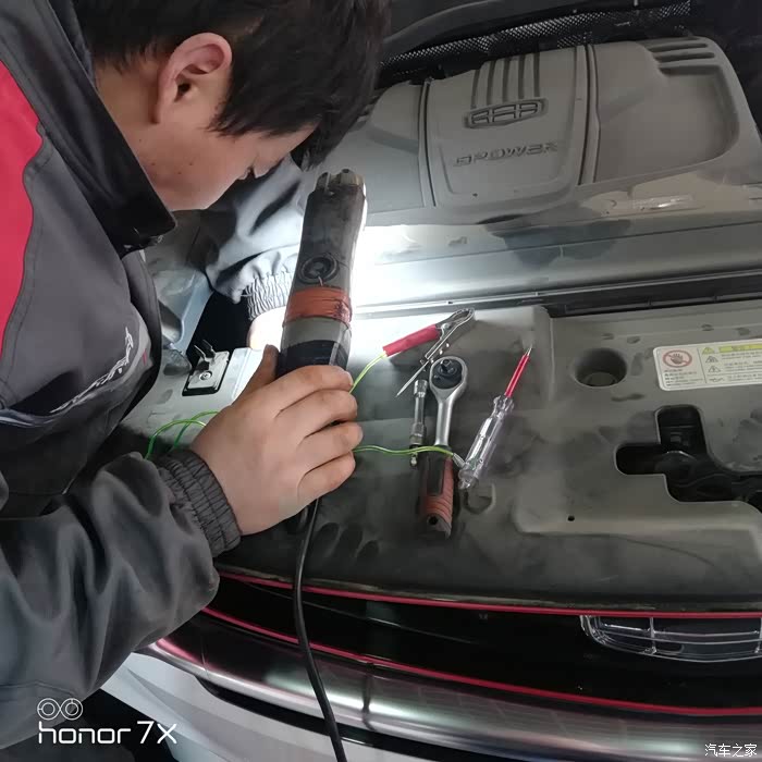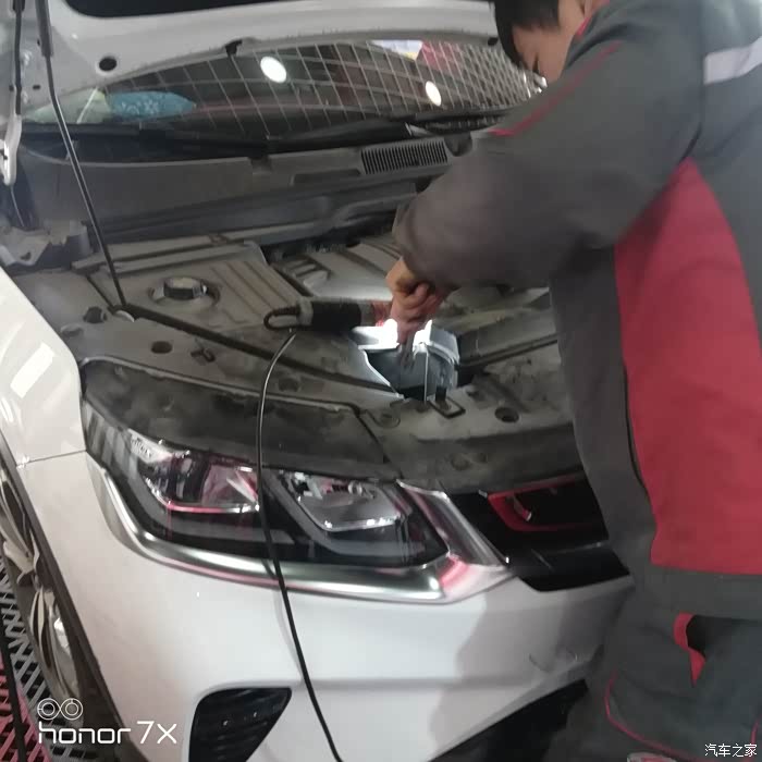 师傅专业,要给大大的赞。拿着灯管在看缤越的线路,这需要把防冻液壶底下的塞口打开,然后加压将里面的旧液排出,然后就可以加普利司通了。