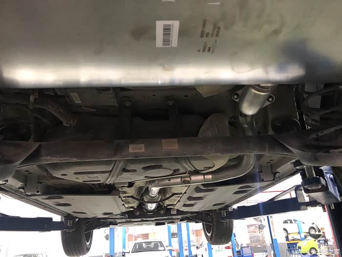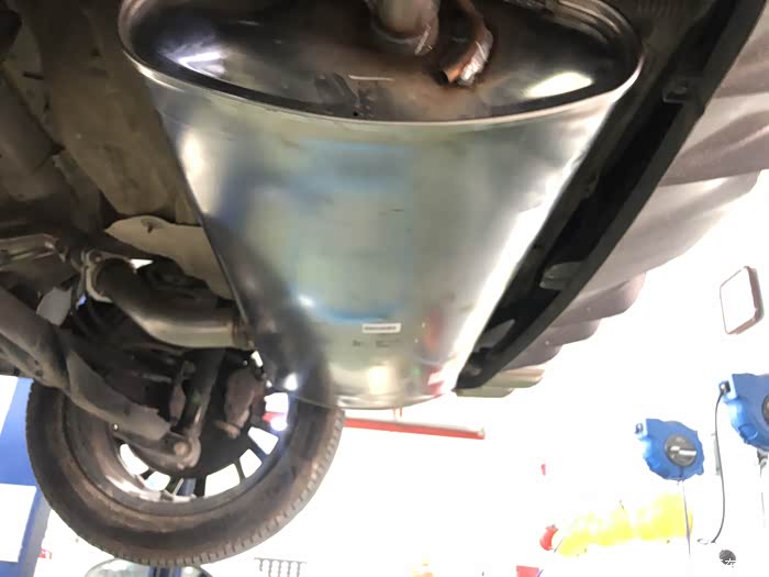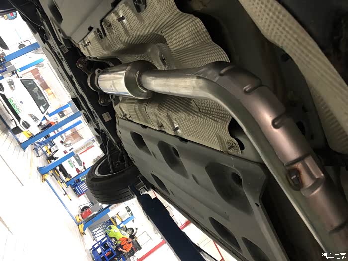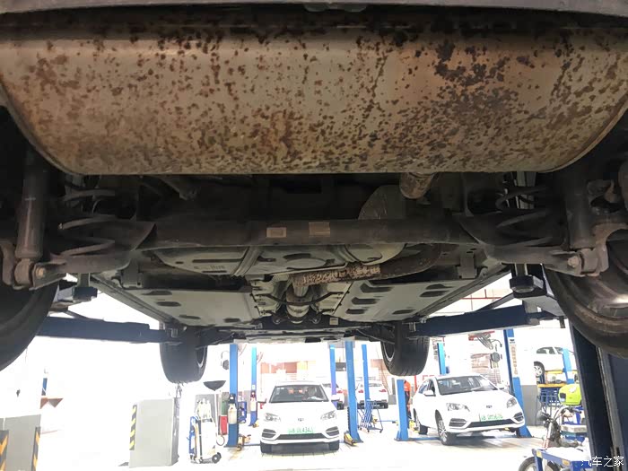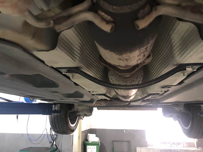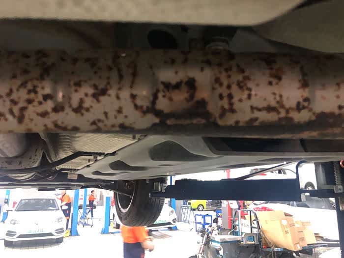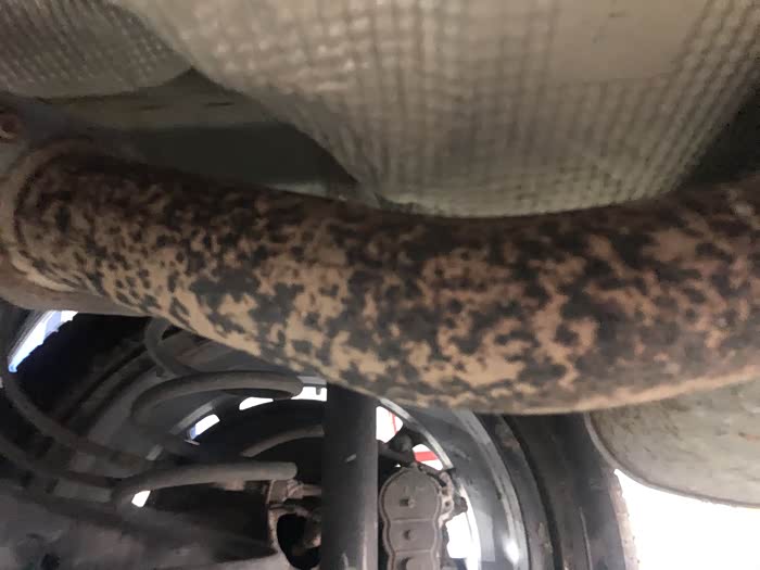 不去不知道,一看吓一跳,把车子调起来后,整个排气管和过滤器全部是斑斑点点的锈点。