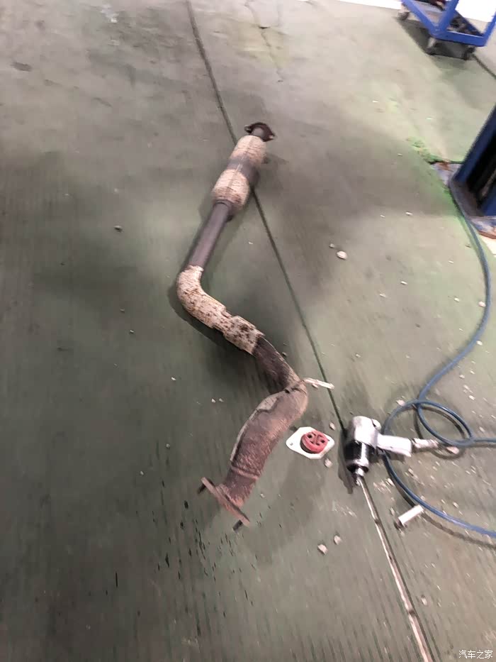 准备更换,看,就是这个排气管,已经锈成这样了。