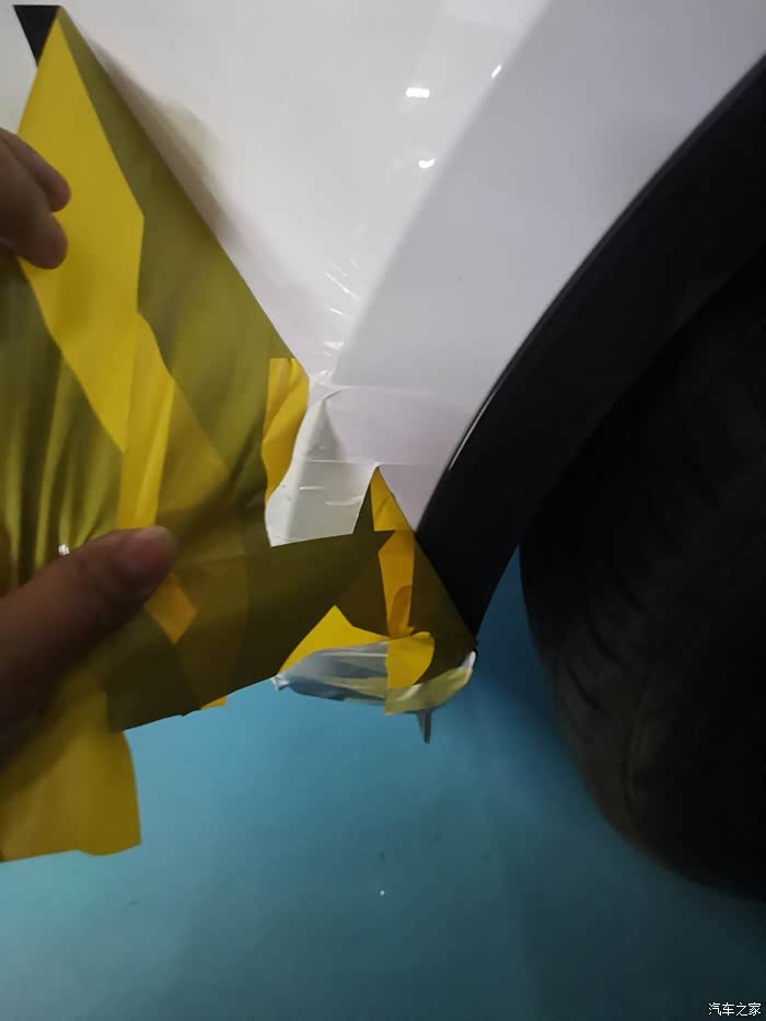 最后一片胶带撕掉,马上就要出效果了,已经看得出来有一条长长的白色的新漆面就这样生成了,至少不用担心雨天会生锈了