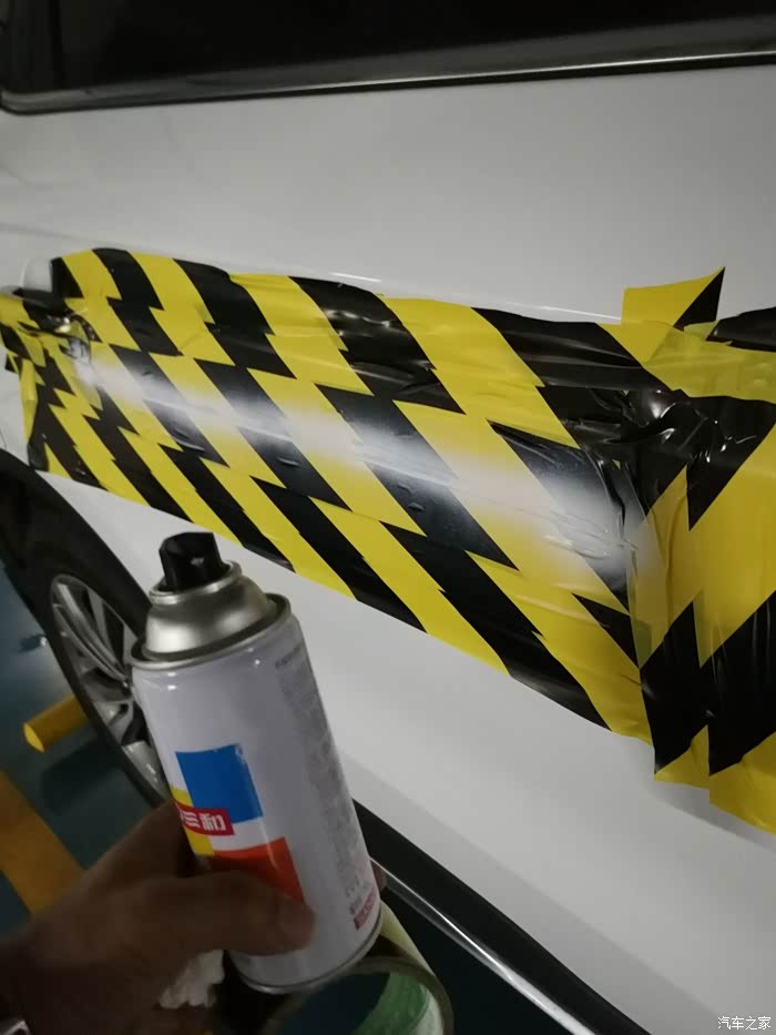 贴的时候千万注意只留出需要喷涂漆面的被刮擦划痕部位即可,以免喷漆的时候误喷到其他漆面好的地方,话说这个还是需要一定的动手能力的哦,然后,保持适当距离反复多次喷洒