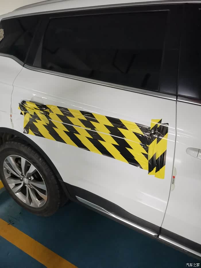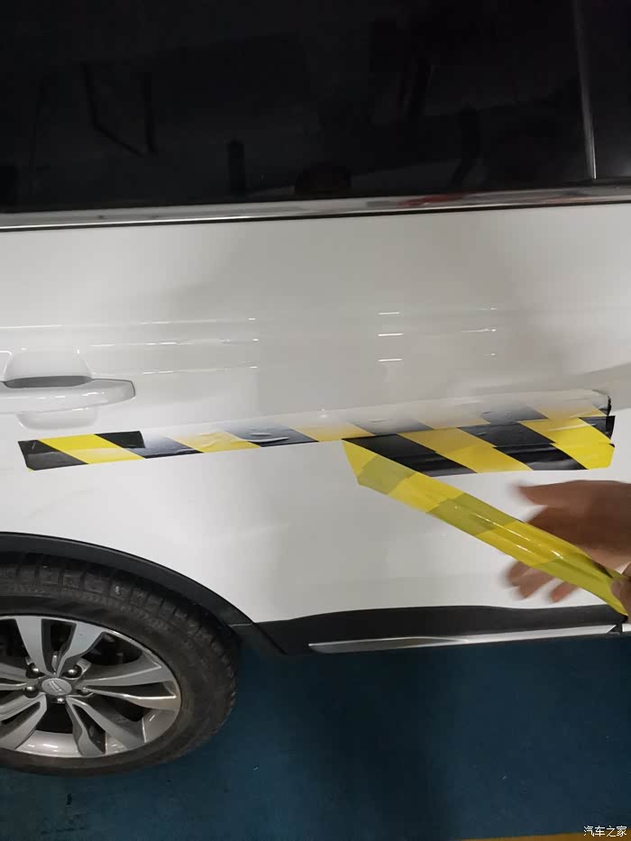 看看这一道又细又长的划痕,真的是心痛啊,时刻提醒我以后开车一定要小心,今天自己动手先试一下,搞得不好看回头再去娘家店里重新做。贴好遮挡胶布,准备开工